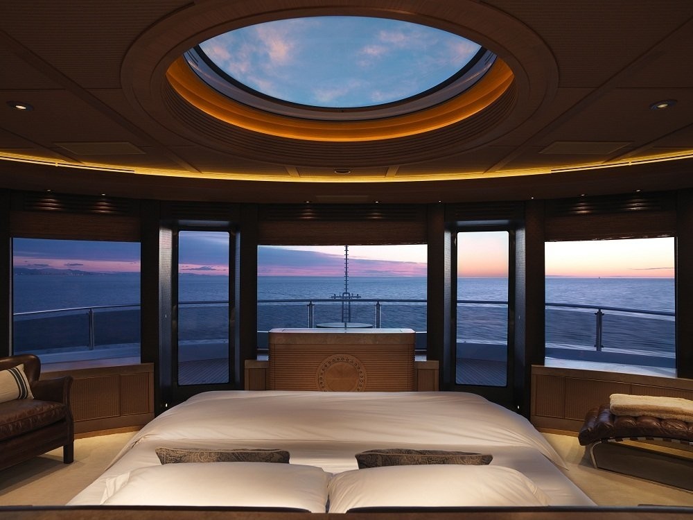 Extensive Aspect Sunset Dusk: Yacht NAIA's Main Master Cabin Pictured