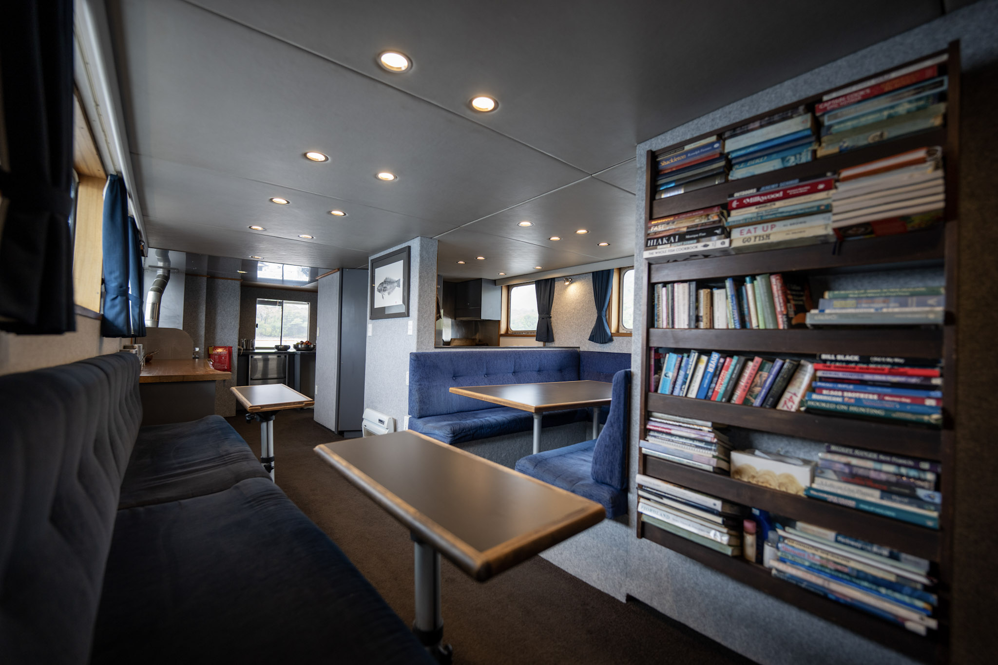 The communal areas onboard include the salon on the main deck which features 2 leather couches, a table and a bar area as well as a 32” LCD TV and X Box.