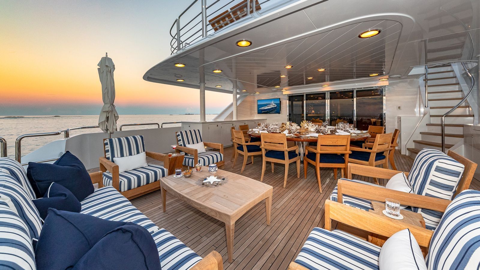The yacht is wheelchair accessible, with extra-wide doors, spacious walkways and a centrally located elevator providing convenient access to all four decks.