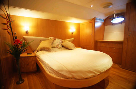 The forward twin cabin also has a head with adjoining wash facilities and a full length wardrobe. Crew cabins are located forward with private facilities.