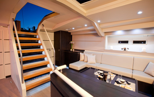 The saloon is spacious with an open plan layout, and a rise-and-fall table that can convert a formal dining area into a relaxed place to enjoy the state of the art multimedia systems in an informal surrounding. The large and fully appointed galley allows the chef to create fabulous offerings with ease.