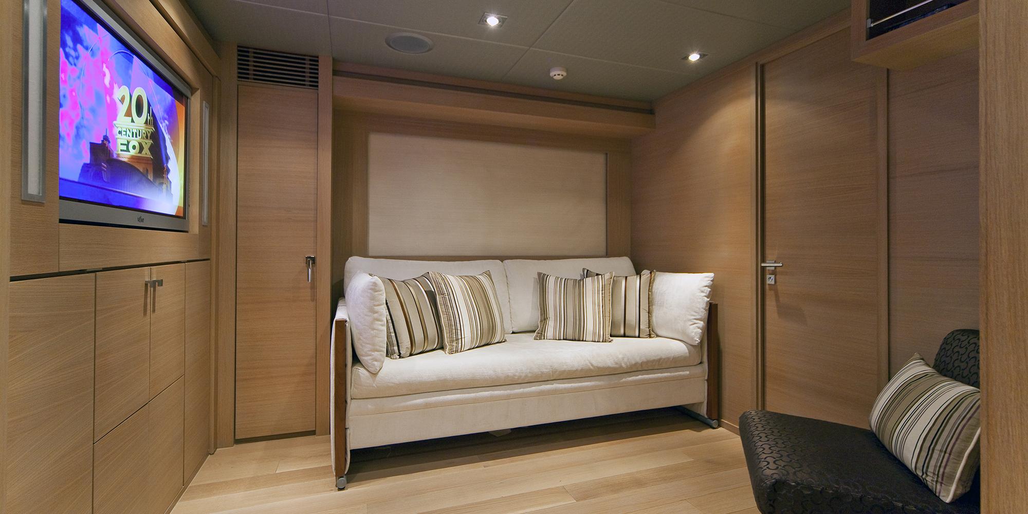 The lower salon can be converted to a 4th Twin Guest Cabin with two bunk beds and adjoining ensuite.
