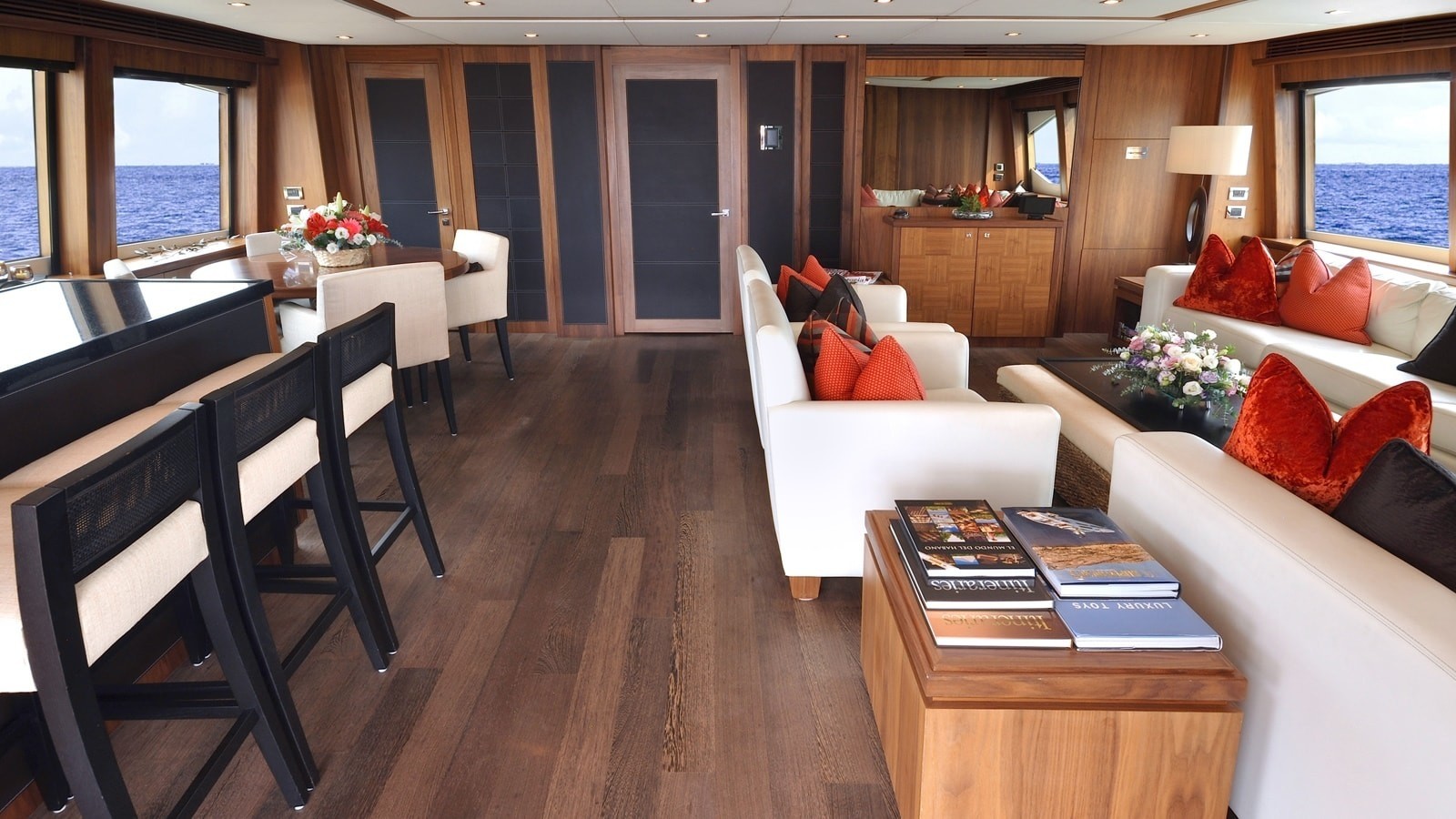 NOTABLE FEATURES: ~ spacious modern superyacht ~ alfresco dining area ~ flexible accommodation ~ main deck master suite ~ on deck Jacuzzi ~ gym equipment ~ air conditioning ~ WiFi ~ at anchor stabilisers ~ underway stabilisers