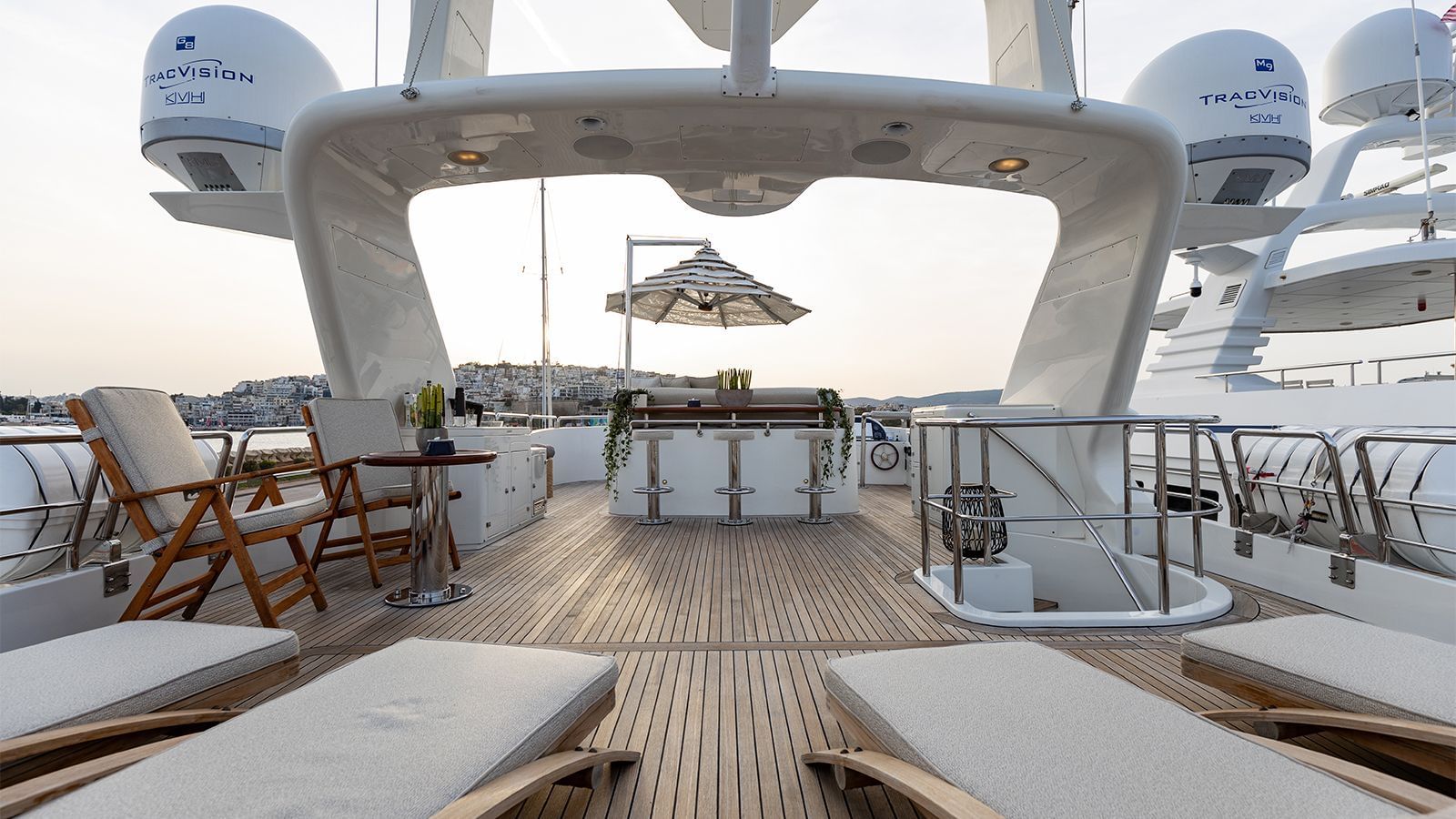 Aboard the tri-deck designed Benetti OAK, guests have ample area to enjoy casual relaxation or entertain in style. The aft deck is adjacent to the salon, with seating and an alfresco dining option.