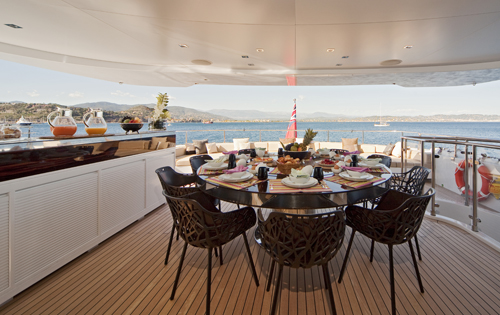 Luxury Charter Yacht MANIFIQ Upper aft deck dining