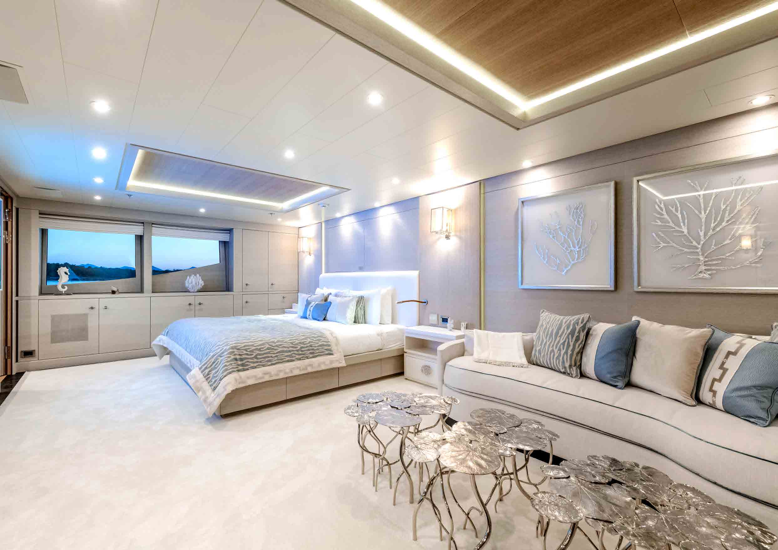Her light and contemporary interior is by Nuvolari Lenard, offering comfortable accommodation to up to 11 guests.