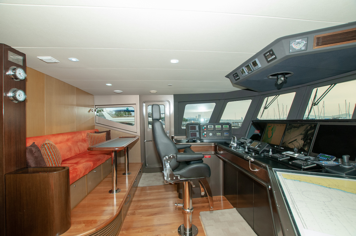 The master stateroom is equipped with full king size bed, wardrobe, 32” LCD TV, DVD and ipod dock. Private ensuite includes bath with 20” LCD TV.