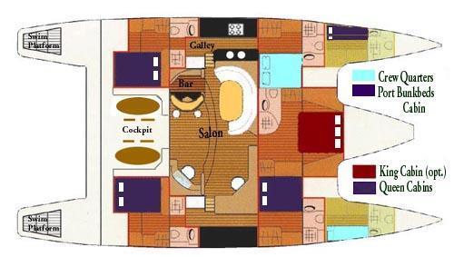 The pair of teak dining tables in the enormous cockpit provides the perfect base for al-fresco meals which are prepared and served by our professional yet charming crew.