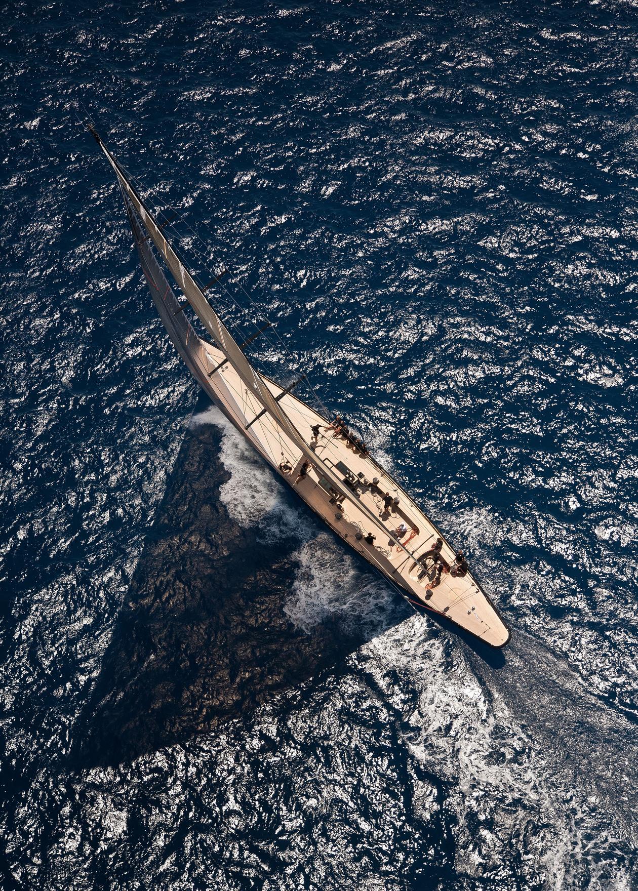 Her deck layout is comparable to a modern maxi with large open cockpit and separate cockpit for the helmsman. On deck and in the interior Firefly features a minimalistic interior with pipe costs forward of the mast, a stall shower and separate toilet, locker space for all the crew, a small galley and a navigation table.