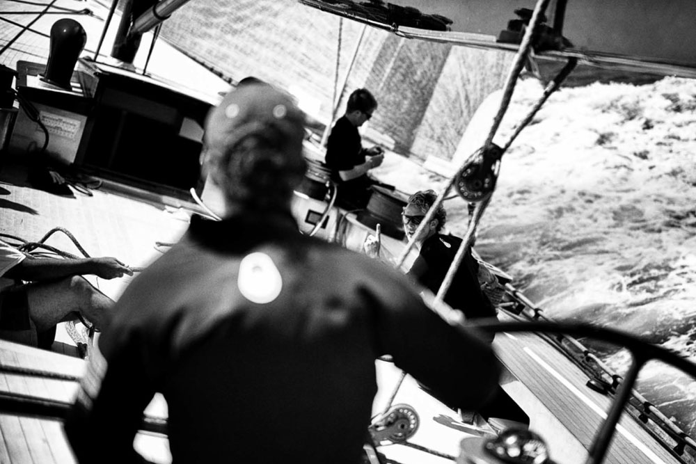 Her deck layout is comparable to a modern maxi with large open cockpit and separate cockpit for the helmsman. On deck and in the interior Firefly features a minimalistic interior with pipe costs forward of the mast, a stall shower and separate toilet, locker space for all the crew, a small galley and a navigation table.