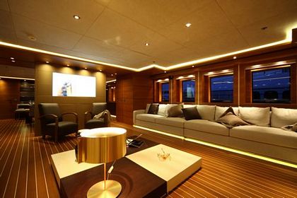 The master cabin is on the upper deck and boasts private access to the exterior deck; the cabin is full beam of the yacht with a king size bed and features an owner’s salon and office, en-suite facilities with a Spa Pool tub, steam bath and spa room.