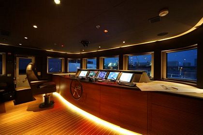 She offers superb accommodation to 12 guests in 6 comfortable Luca Dini designed cabins. Her layout comprises two full beam master staterooms of identical size. One of the master suites is located on the main deck forward, whereas the other can be found on the upper bridge deck. The latter features direct access to the exterior deck.
