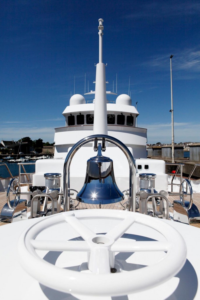 This area is equipped with a fully glazed semicircular door that opens fully to almost the entire width of the superstructure, thus linking the interior to the exterior space. The captain’s cabin and the wheelhouse too are located on this deck.