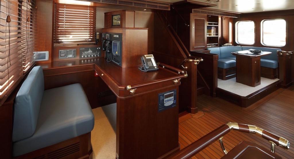 The interior layout was designed to offer guests the enjoyment of all outdoor aft areas, such as the lounges and access to the sea.