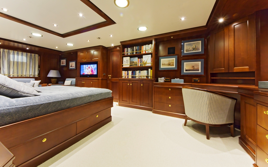 The laundry room is located forward of the guest area and allows the separation of this area from the crew area located forward. The crew quarters feature four cabins and the crew mess and are accessible through the tender deck.
