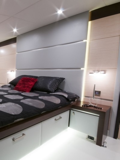 The flybridge, which offers the best view offers a choice of sun or shade, as the custom awning can be opened or closed at your discretion. The electric grill and corian bar is ideal for a casual BBQ while enjoying the surrounding vista at anchor.