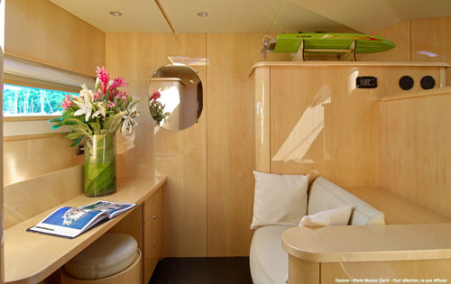 Above decks enjoy fun in the sun, as ELYSIUM’s foredeck and trampolines provide ample room for sunbathing and relaxation.