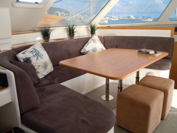 Guests can choose to sample local delicacies or savor the chef’s gourmet delights indoors at the formal dining table or al fresco on the covered aft deck.