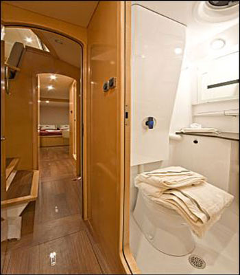 GENESIS boasts a light and spacious salon, finely finished and decorated in stylish neutral tones – perfect for warm weather sailing.