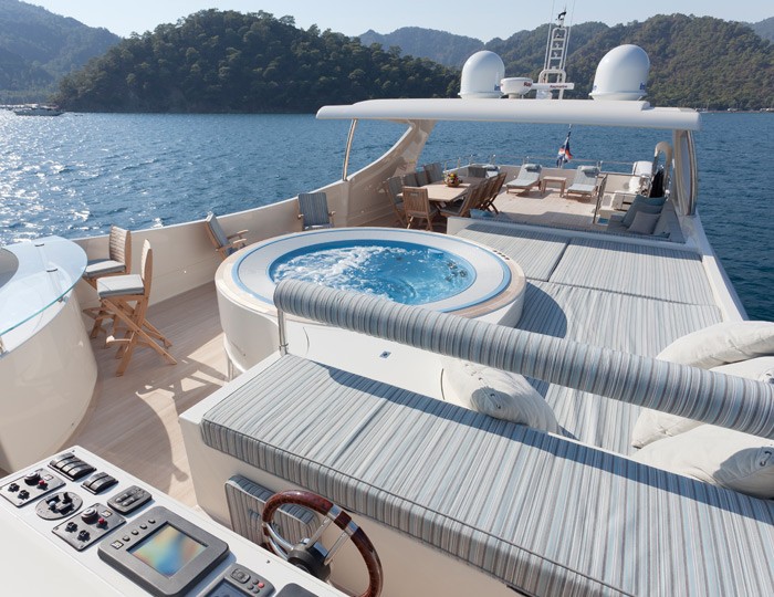 Amenities onboard superyacht MEYA MEYA include the following: A 4.75 RIB Jet concept, 140HP diesel engine dinghy, 6 person Spa Spa Pool, a wakeboard, 2 pairs of water skis, a monoski, snorkelling equipment for all sizes, a towable donut and a banana. Central entertainment system throughout the boat.