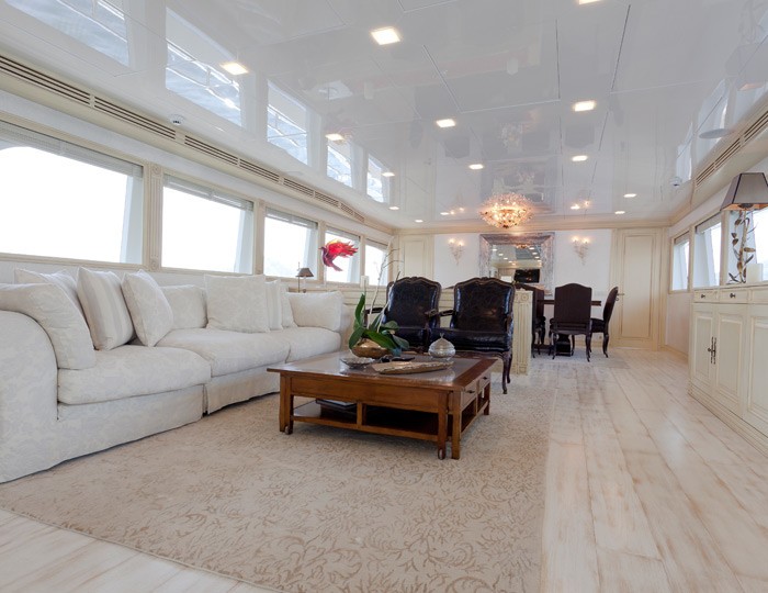 All of the staterooms feature an en-suite bathroom with shower and toilette, intercom, satellite phone and entertainment system. Yacht M&M has a crew of 6 to attend to the owner and charter guests.