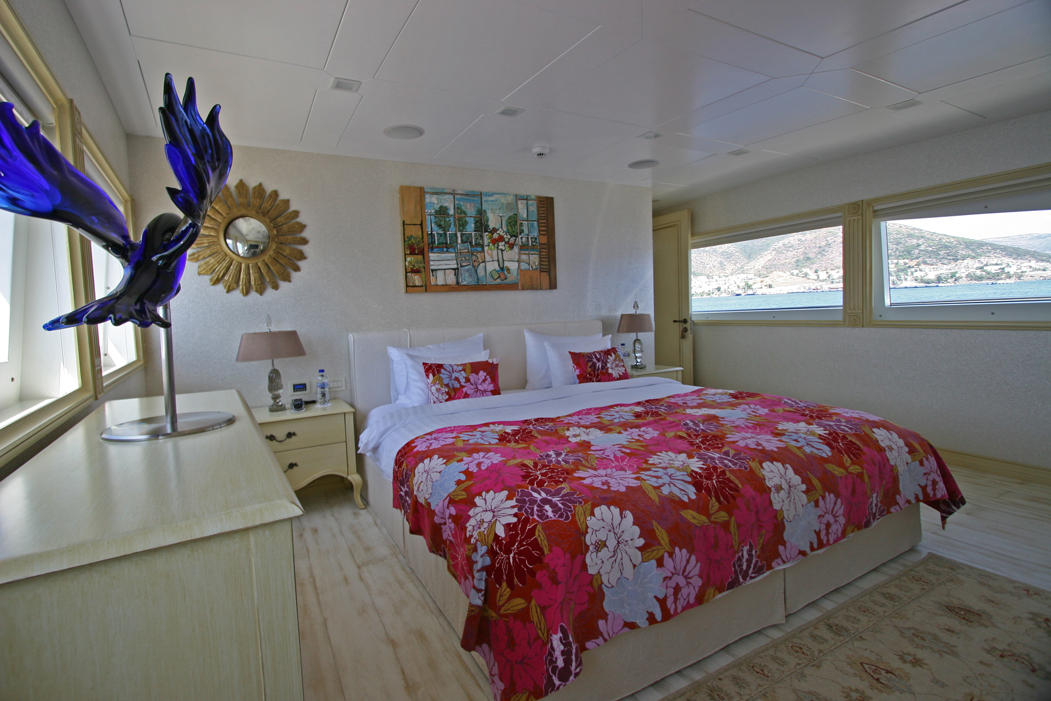 All of the staterooms feature an en-suite bathroom with shower and toilette, intercom, satellite phone and entertainment system. Yacht M&M has a crew of 6 to attend to the owner and charter guests.