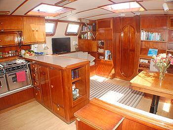 Her open galley invites guests to sample the chef’s gourmet creations, and her golden woodwork and warmly decorated interior welcome you to your home away from home on the water.
