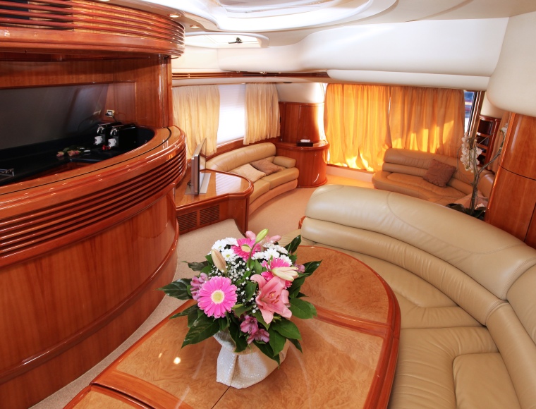 Her four beautifully appointed staterooms include a double Master and VIP, each with personal TV/DVD/Stereo systems, and two twin staterooms, all with a private bathroom and showers.