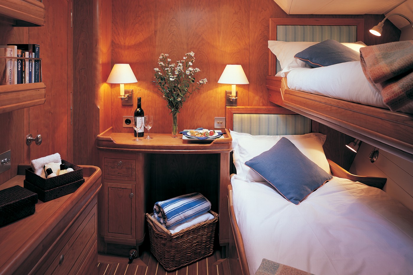 She is able to accommodate up to 4 guests in 2 cabins as well as a maximum of 10 whilst sailing.