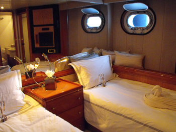 All cabins have individual TV/DVD and stereo systems, and the deck has it’s own hi-fi sound system with I-Pod hookup and plenty of room for dancing!
