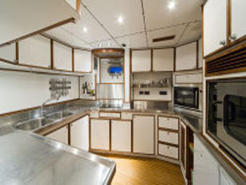 A stunning dining salon offers seating for 6, and a large, professionally equipped galley is where your chef will create spectacular meals prepared to your preferences.