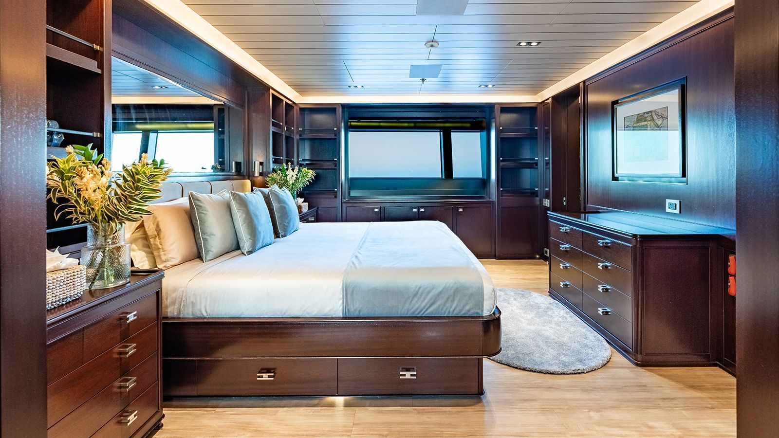 she has five cabins in total and can offer accommodation for up to 12 guests, with additional cabins for 11 crew members.