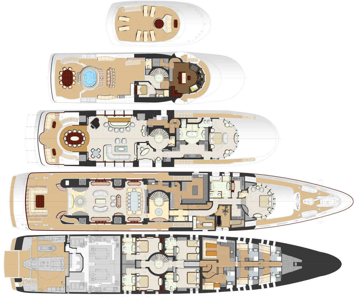 NOTABLE FEATURES: ~Gym ~Beauty parlour ~Massage area ~Sauna ~Spa pool ~Elevator to all decks ~2 on deck panoramic Master Suites ~Touch and go Helipad