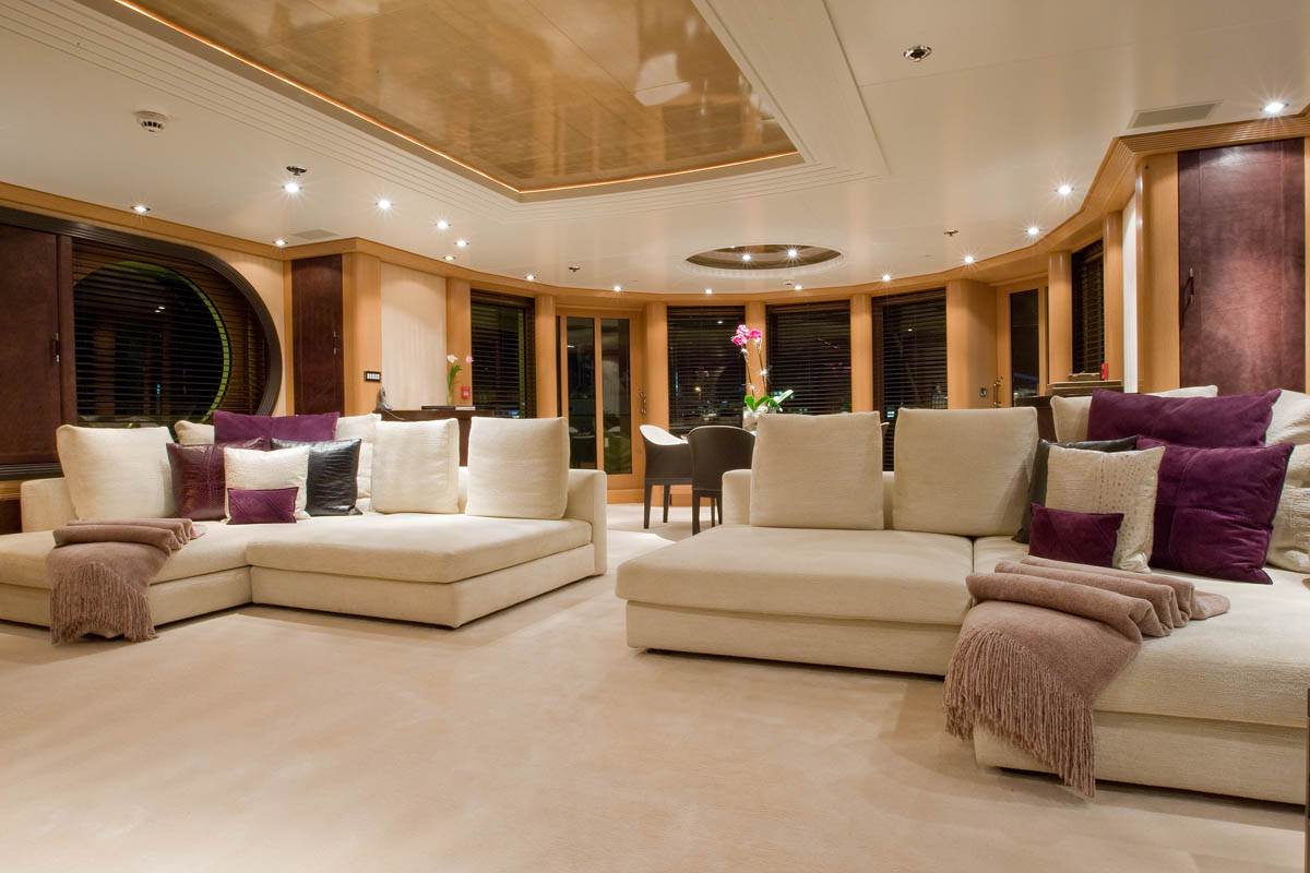 She offers a variety of options for dining: there are alfresco dining areas on the bridge deck and sundeck, as well as a large dining table in the main salon.