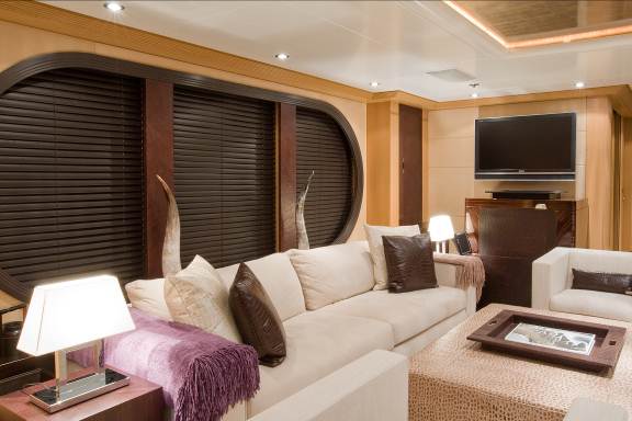 She offers a variety of options for dining: there are alfresco dining areas on the bridge deck and sundeck, as well as a large dining table in the main salon.