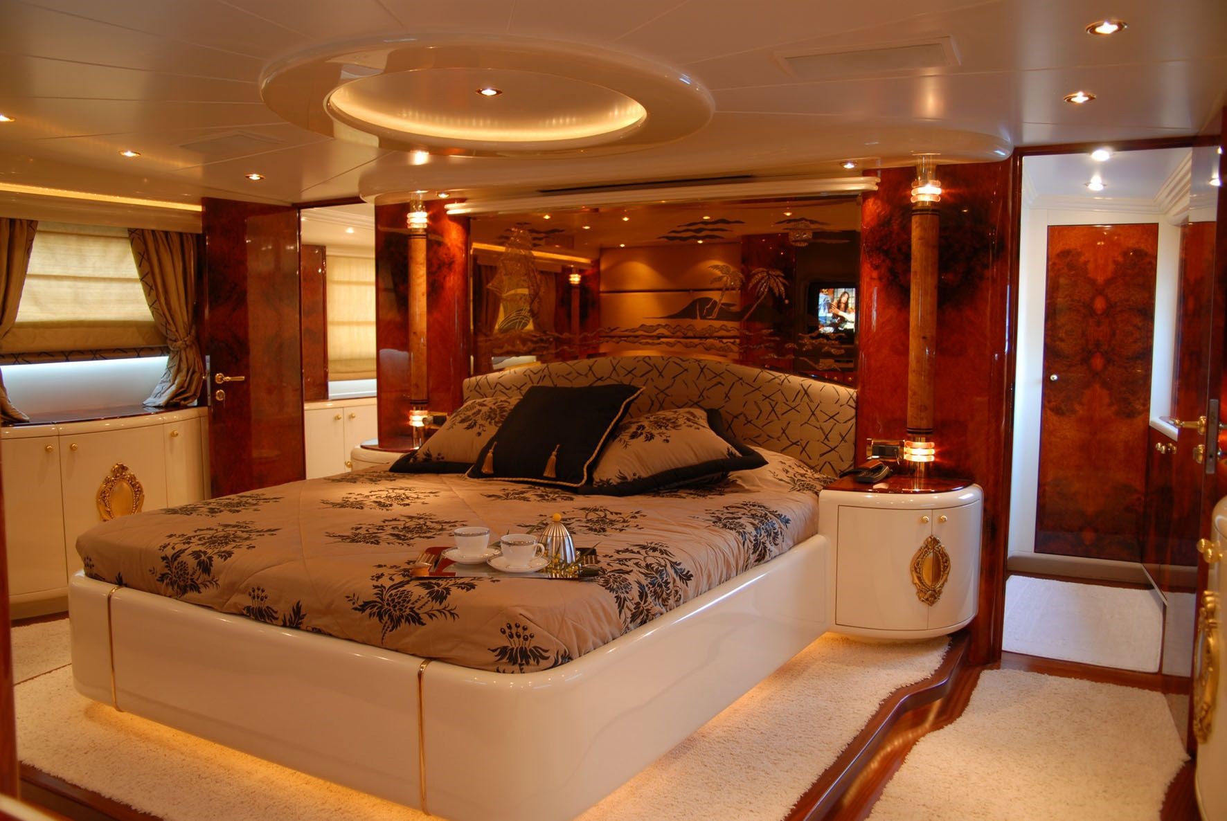 She has a semi displaced cold molded wood hull measuring 39.3 meters (128ft) and can accommodate 12 guests in 6 deluxe cabins. The yacht HULYA is available for charters in the Eastern Mediterranean.