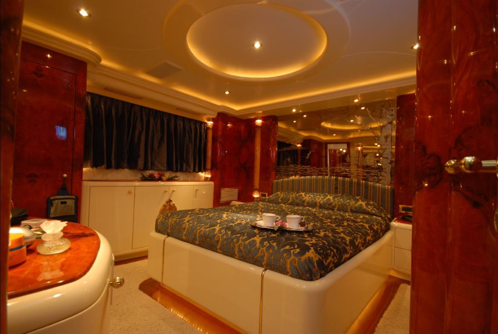 She has a semi displaced cold molded wood hull measuring 39.3 meters (128ft) and can accommodate 12 guests in 6 deluxe cabins. The yacht HULYA is available for charters in the Eastern Mediterranean.