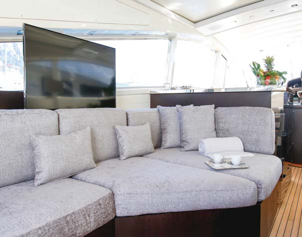 Powered by twin MTU engines, THE OFFICE is capable of cruising at 32 knots and has top speeds of 38 knots. She is a performance open yacht of GRP construction, featuring appealing sleek and sporty lines. Accommodation aboard the Leopard Arno 37 yacht THE OFFICE is below decks, in 3 guest cabins for a total of 7 charter guests.