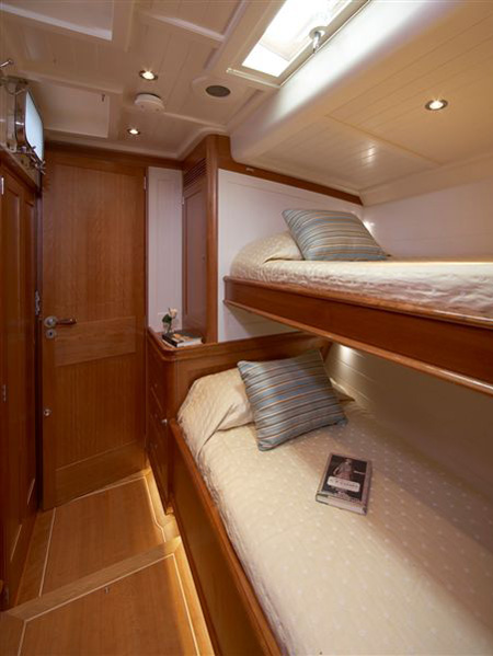 She is an aluminium-built and sloop-rigged 90ft classic with an aft owner’s cabin and separate crew quarters forward. She is able to accommodate up to 6 guests in 3 cabins.