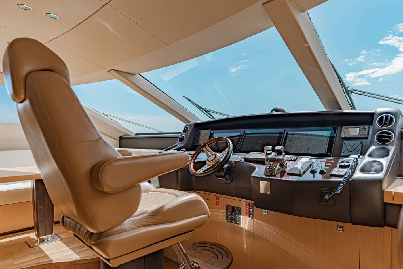 The main salon features a stunning new Samsung 55-inch smart TV, complemented by new crystal lamps and a marble coffee table. Fresh deckheads have been installed throughout, creating a bright and contemporary atmosphere.