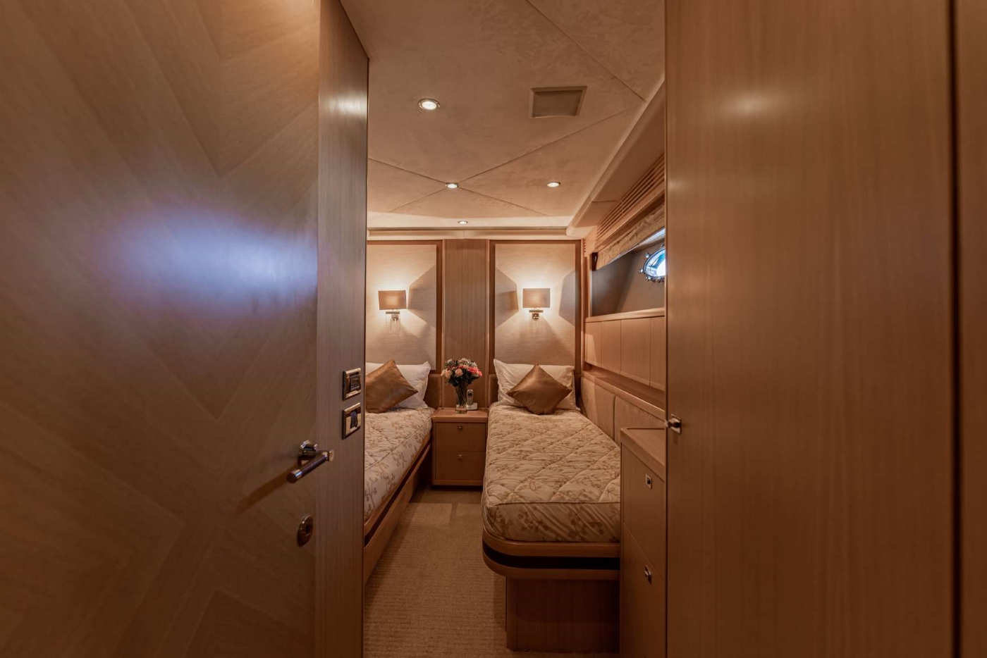Constructed by the renowned Princess shipyard, this flybridge yacht accommodates up to 8 guests in 4 beautifully appointed cabins, featuring 3 double cabins and 1 twin cabin configuration.