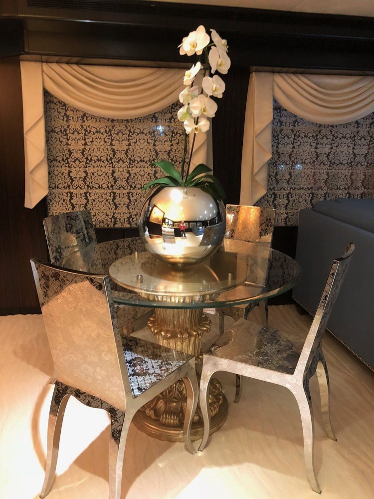 Motor yacht GRADE I has plenty of interior living to enjoy and features an elegant décor of soft cream furnishings, rich dark woods and intricate detailing.