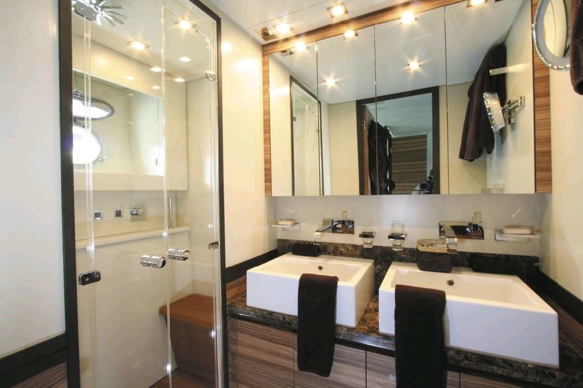 A stairway on both sides joins to the lower deck swim platform, which has plenty of room for sunbathing and lounging next to the sea.