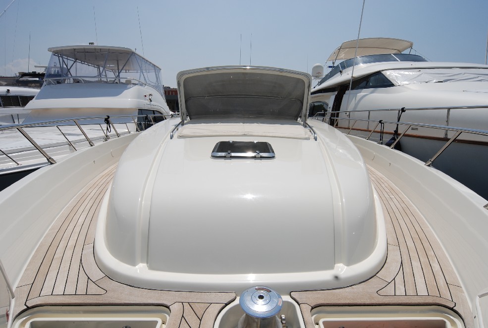 M/Y TEONE’s aft deck offers a double sunpad, while the foredeck boasts a further sunpad and fold down Bimini cover.