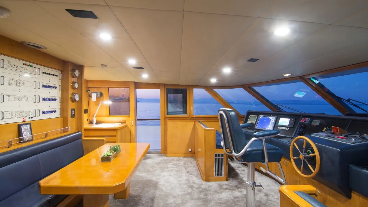 The yacht has a steel displacement hull and is able to accommodate up to 12 guests in 7 cabins.