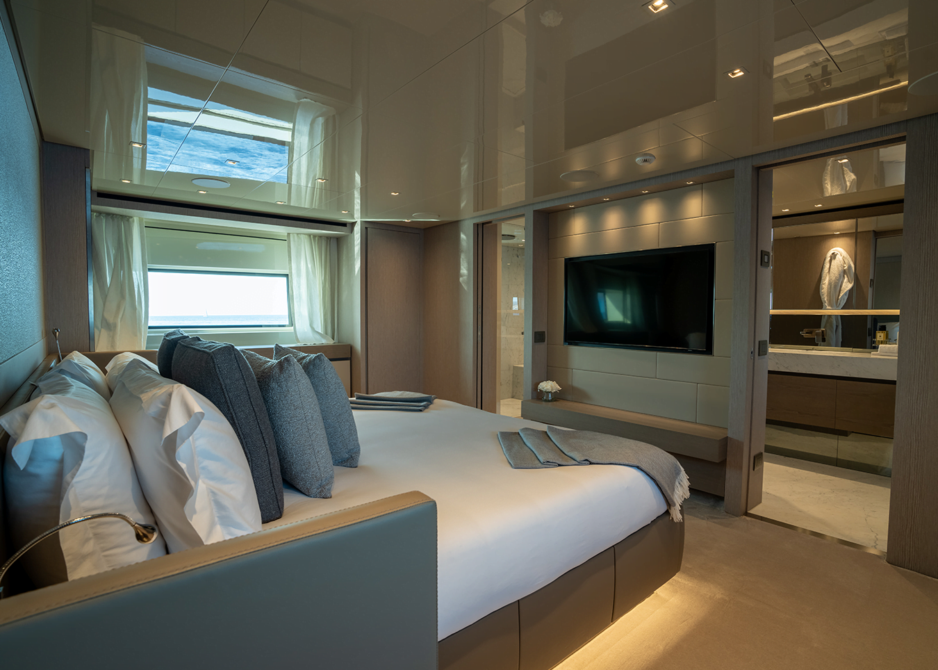 The yacht offers deluxe and stylish interior design by Daniela Speicht and accommodation in 5 en-suite cabins, for up to 10 people. She has a crew of 9.