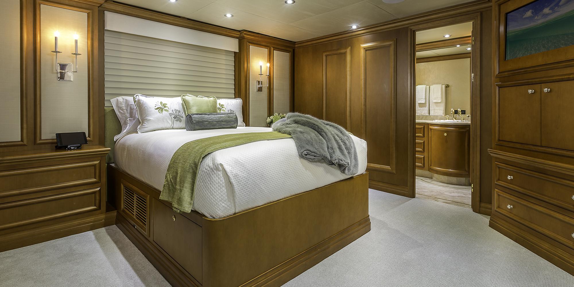 The yacht offers deluxe and stylish interior design by Daniela Speicht and accommodation in 5 en-suite cabins, for up to 10 people. She has a crew of 9.