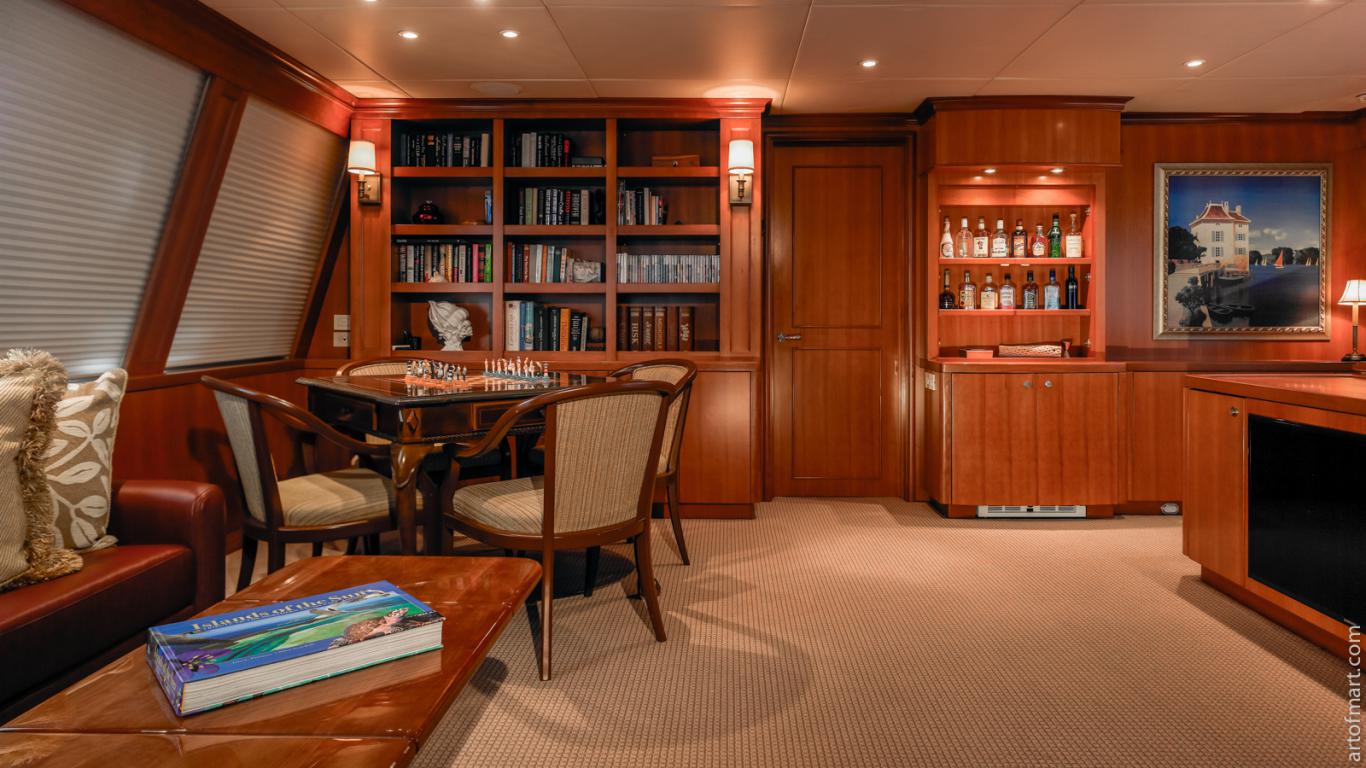 The MURPHY’S LAW motor yacht offers an alfresco dining option on the shaded aft deck, followed by an extended swim platform and abundance of fabulous water toys including a 26ft fishing boat.