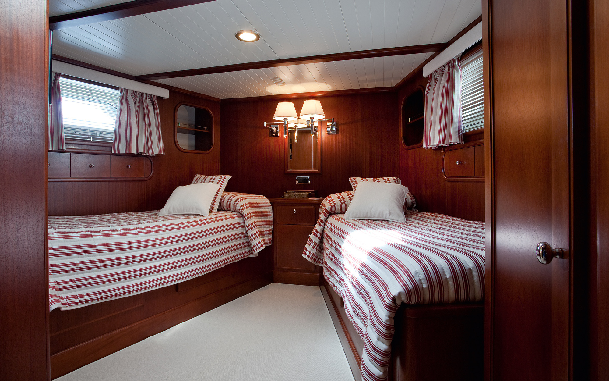 She is able to accommodate 10 guests in 4 cabins located below decks including a master cabin with a double bed along with three twin bedded cabins.