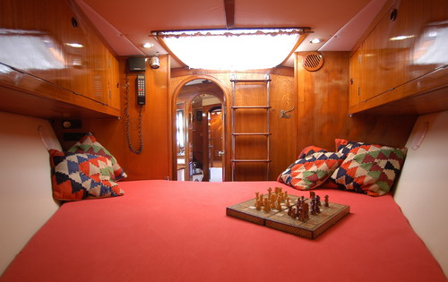 Forward of the salon are 3 guest cabins, 1 double and 2 twins with option double conversions. Plenty of overhead hatches, and ports provide natural light and fresh sea breezes.